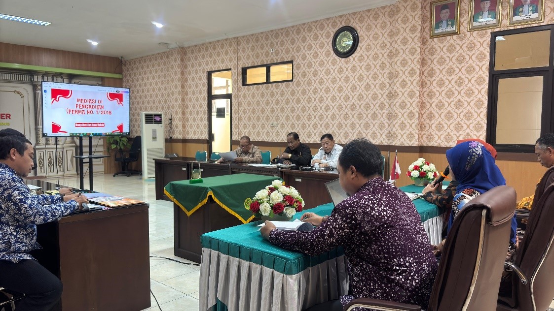 Kudus, 14 Agustus 2025 – Pengadilan Agama Kudus menggelar Rapat Monitoring dan Evaluasi (Monev) Mediator Non Hakim, Kamis (14/8), bertempat di Media Center PA Kudus. Rapat dimulai pukul 10.00 WIB dan dipimpin langsung oleh Ketua Pengadilan Agama Kudus. Hadir dalam kegiatan ini Wakil Ketua, para hakim, Panitera, Sekretaris, Kasubbag Umum dan Keuangan, seluruh Panitera Muda, serta para mediator non hakim. Agenda utama rapat adalah penyamaan persepsi mengenai keberhasilan mediasi di Pengadilan Agama Kudus, dengan harapan dapat meningkatkan kualitas penyelesaian perkara melalui jalur damai.