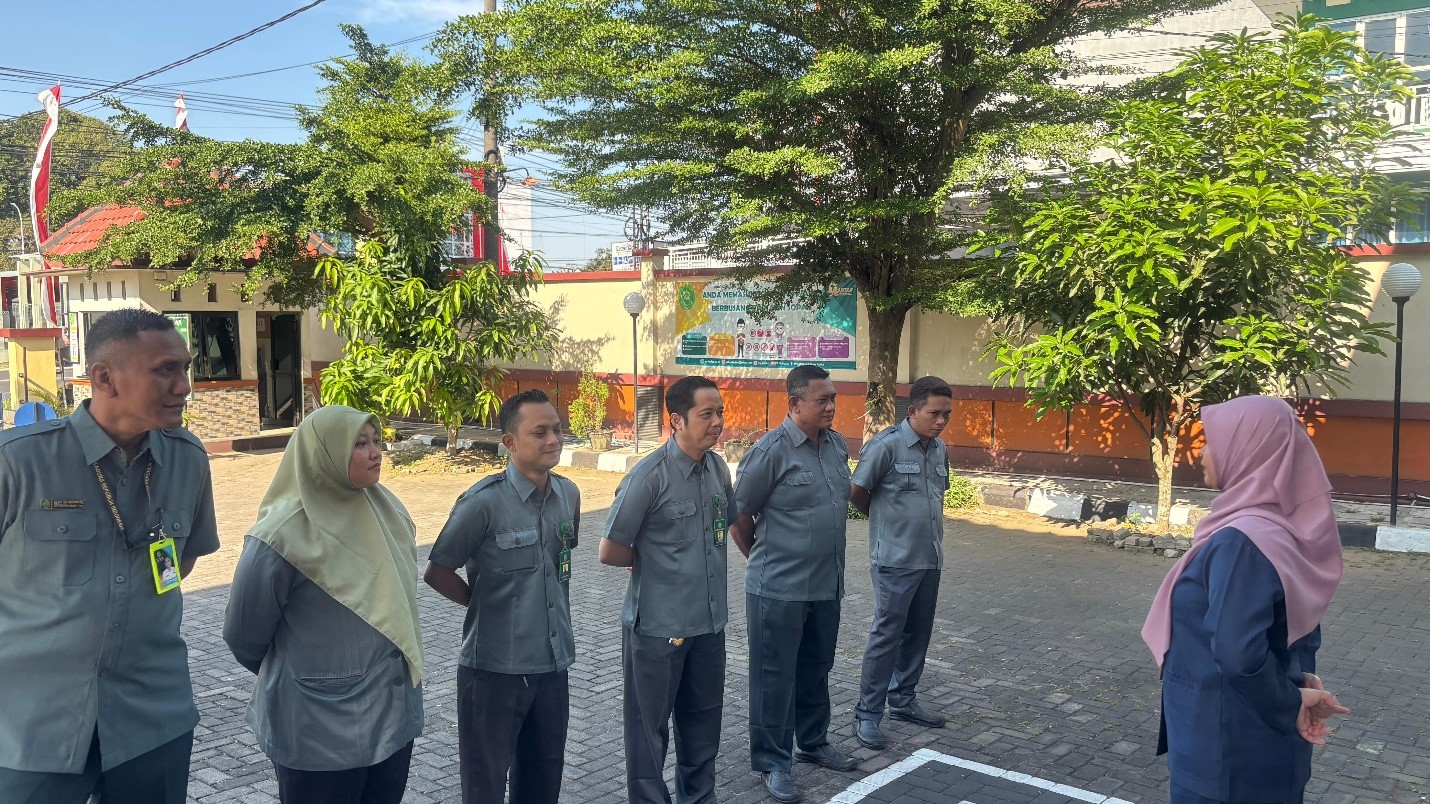 Dalam arahannya, beliau juga menyampaikan bahwa senyum bukan hanya sekadar ekspresi wajah, tetapi juga cerminan sikap ramah, profesional, dan kesiapan dalam memberikan pelayanan terbaik. Beliau juga mengajak seluruh petugas diajak melakukan latihan senyum bersama untuk membiasakan ekspresi ramah. “Senyum tidak memerlukan biaya, namun berdampak besar dalam menciptakan pelayanan yang humanis dan berkesan” imbuhnya. Beliau juga mengingatkan bahwa petugas keamanan merupakan garda terdepan dalam menjaga keamanan, ketertiban, dan kenyamanan di lingkungan PA Kudus. Oleh karena itu, sikap profesional, rapi, dan penuh empati menjadi kunci utama dalam menjalankan tugas.