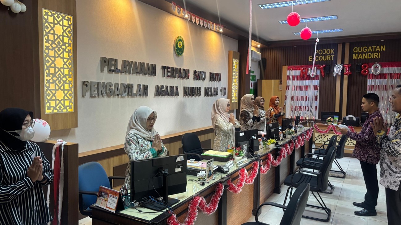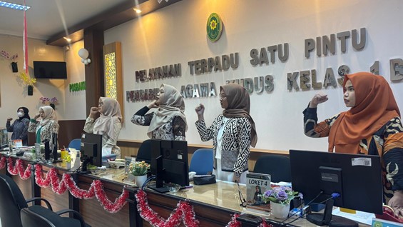 Kudus, Rabu, 3 September 2025. Pengadilan Agama Kudus senantiasa memberikan pelayanan yang prima terhadap masyarakat pencari keadilan. Bukan hanya kepada kaum yang mampu akan tetapi juga terhadap bagi kaum rentan yang seringkali menghadapi hambatan dalam memperjuangkan hak-haknya di hadapan hukum. Kerja-kerja pelayanan ini didukung dengan inovasi terbaru PA Kudus yaitu SERAMBI (Selasa Rabu Semangat Briefing Pagi). Inovasi SERAMBI menekankan standar pelayanan pada PTSP yang telah dituangkan dalam SOP Penerimaan Tamu Pengadilan Agama Kudus, termasuk tata cara petugas dalam memberikan bantuan, meningkatkan keramahan, serta mengoptimalkan layanan yang inklusif.