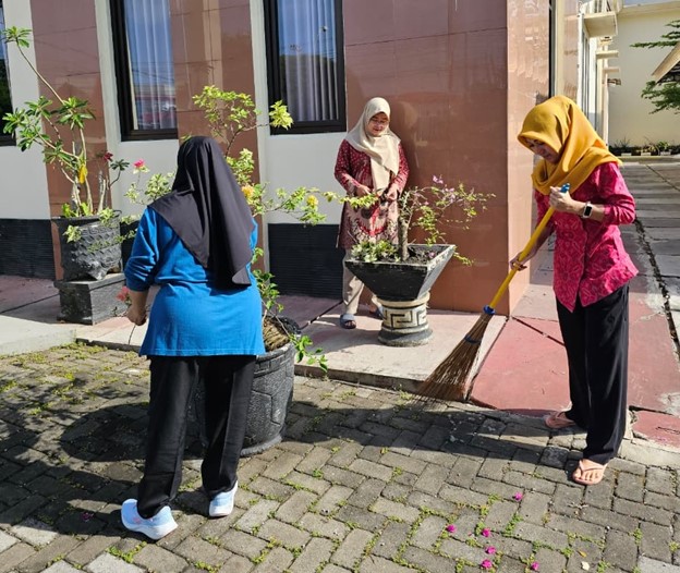 Pelaksanaan Jum’at Bersih dimulai sejak pagi hari, di mana para pegawai bersama-sama membersihkan area sekitar kantor, mulai dari halaman, ruang pelayanan, hingga lingkungan sekitar gedung. Tujuan dari kegiatan ini tidak hanya untuk menjaga kebersihan dan keasrian lingkungan kantor, tetapi juga sebagai sarana mempererat kebersamaan, memperkuat kerja sama tim, serta menumbuhkan semangat gotong royong di antara seluruh pegawai.