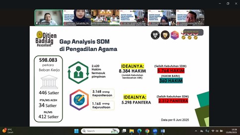 Kudus – Pengadilan Agama Kudus kembali menunjukkan komitmennya dalam peningkatan kapasitas aparatur. Hal ini dibuktikan dengan keikutsertaan Kasubbag Umum dan Keuangan, Umardhani, S.H.I serta Analis Perkara Peradilan PA Kudus, Dwi Hastutiningtyas, S.H. dan Wardah Salsabilla Choirunnisa, S.H. dalam kegiatan Bimbingan Teknis (Bimtek) Dasar Calon Panitera Pengganti yang diselenggarakan oleh Pengadilan Tinggi Agama Semarang secara daring. Kegiatan ini berlangsung selama tiga hari, yakni pada tanggal 15 sampai dengan 17 September 2025.