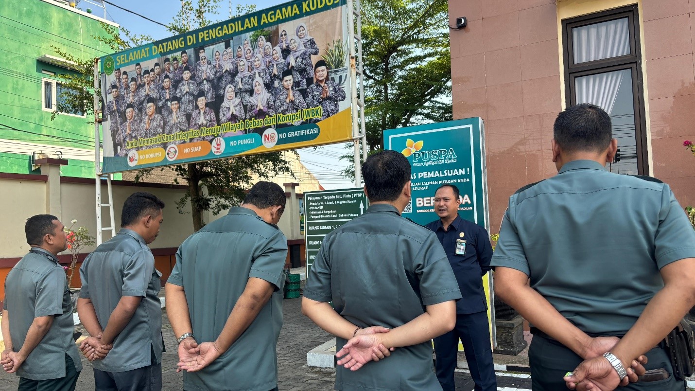 Kudus – Selasa pagi, 07 Oktober 2025, suasana halaman Pengadilan Agama (PA) Kudus tampak berbeda. Para petugas keamanan dan penjaga sidang mengikuti kegiatan Serambi (Selasa Rabu Semangat Briefing Pagi) yang kali ini dipimpin langsung oleh Sekretaris PA Kudus, Bapak Moh. Asfaroni, S.H.I.