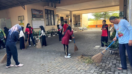 Seluruh aparatur bersama-sama membersihkan area sekitar, menata halaman, serta memastikan lingkungan kantor tetap rapi dan asri. Suasana kebersamaan tampak dari kekompakan para pegawai dalam melaksanakan kegiatan tersebut.