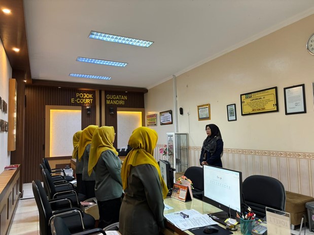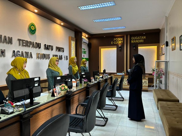 Kudus, 22 Oktober 2025 – Ketua Pengadilan Agama Kudus, Siti Alosh Farchaty, S.H.I., M.H., memimpin briefing Petugas Pelayanan Terpadu Satu Pintu (PTSP) di ruang layanan PA Kudus. Kegiatan ini rutin dilaksanakan sebagai bentuk pembinaan internal untuk memastikan pelayanan kepada masyarakat berjalan optimal dan sesuai dengan nilai-nilai dasar aparatur peradilan.