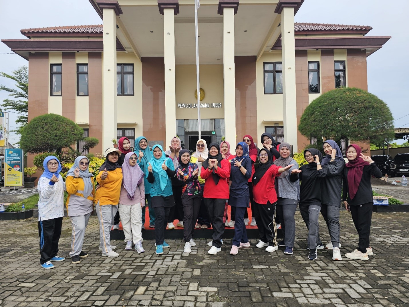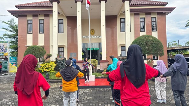 Pengadilan Agama Kudus melaksanakan kegiatan Senam Jum’at Sehat pada Jum’at, 14 November 2025, bertempat di halaman kantor PA Kudus. Seluruh aparatur, mulai dari unsur pimpinan hingga staf, turut ambil bagian dalam kegiatan yang menjadi agenda rutin untuk menjaga kebugaran dan mempererat kekompakan di lingkungan kerja.