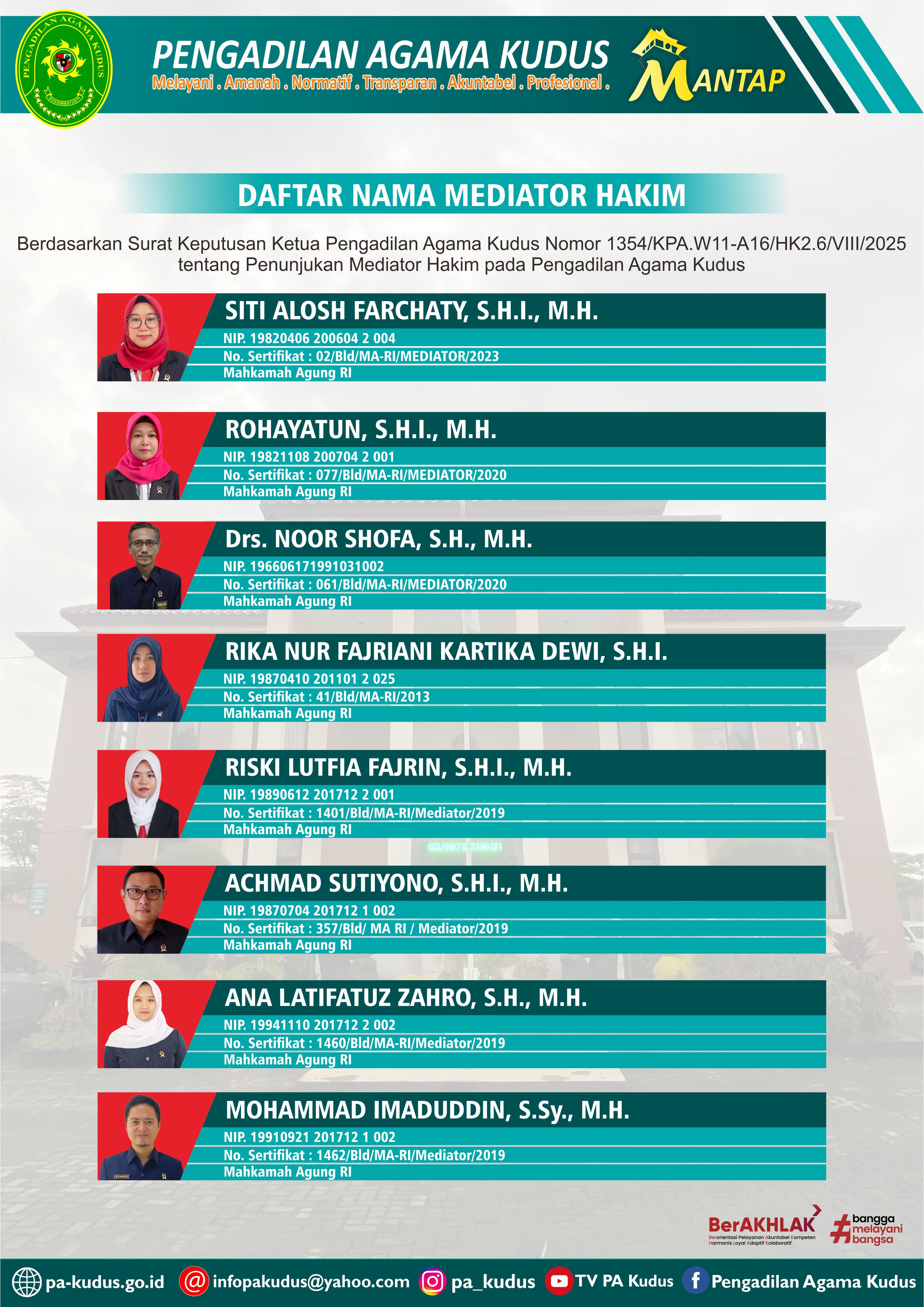DAFTAR NAMA MEDIATOR HAKIM PENGADILAN AGAMA KUDUS