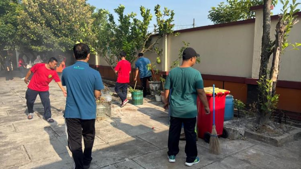 Seluruh aparatur bersama-sama membersihkan area sekitar, menata halaman, serta memastikan lingkungan kantor tetap rapi dan asri. Suasana kebersamaan tampak dari kekompakan para pegawai dalam melaksanakan kegiatan tersebut.