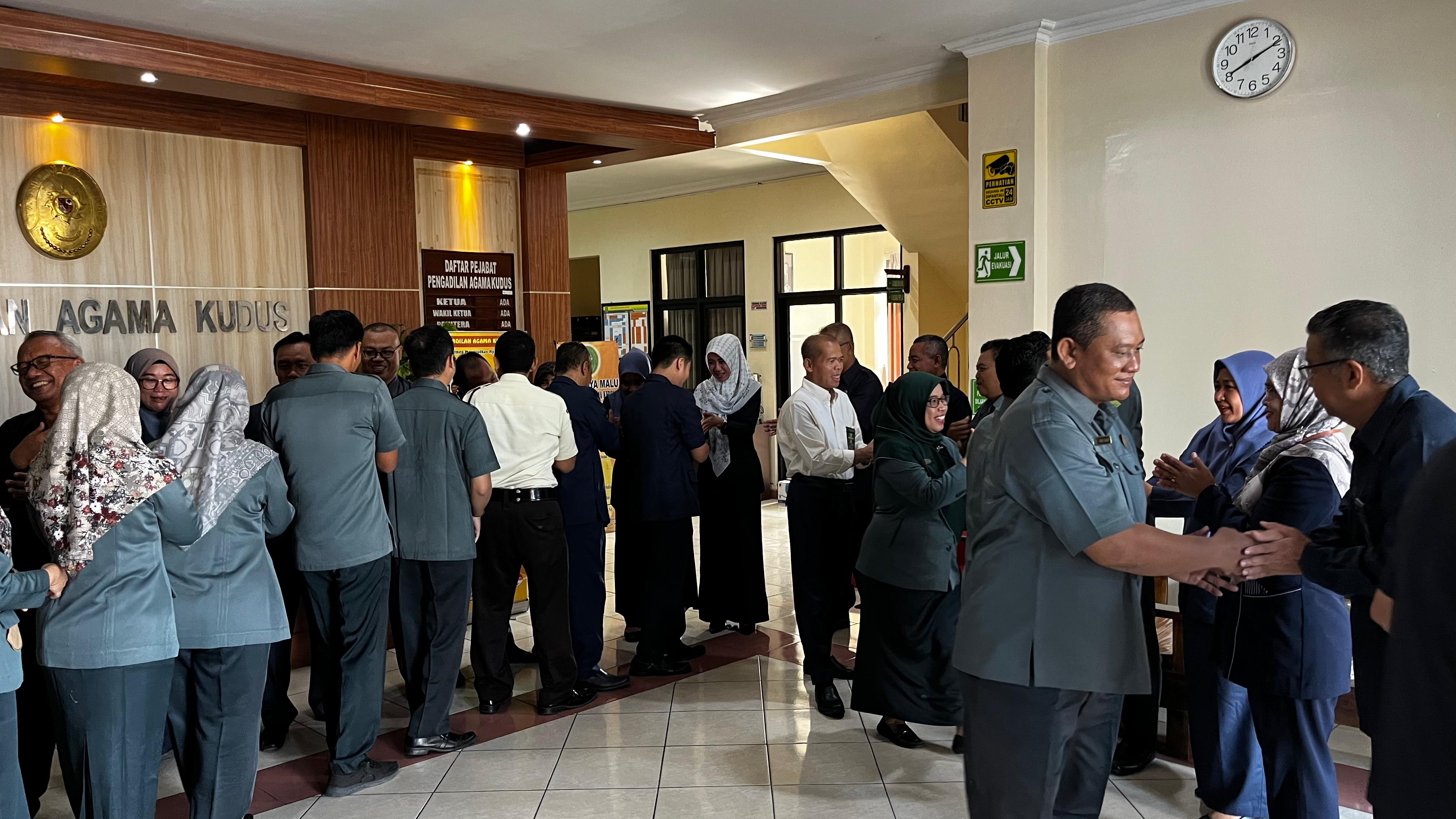 Kudus, 16 April 2024 Mengawali hari pertama masuk kantor pasca libur Idul Fitri dan cuti bersama, Pimpinan dan seluruh pegawai Pengadilan Agama Kudus melaksanakan silaturahmi antar sesama Pegawai Pengadilan Agama Kudus.